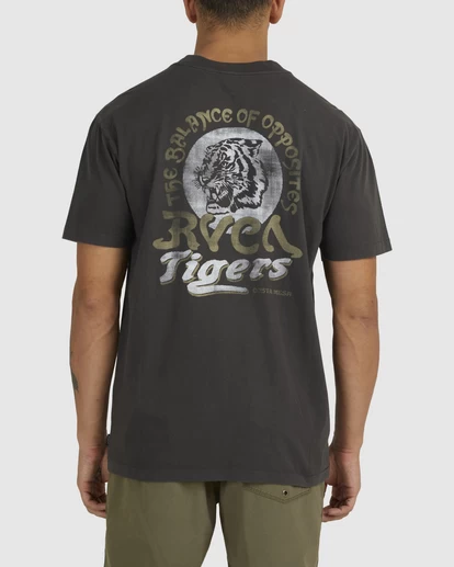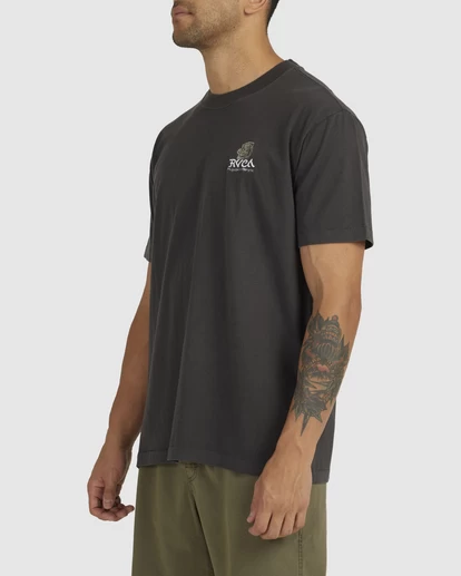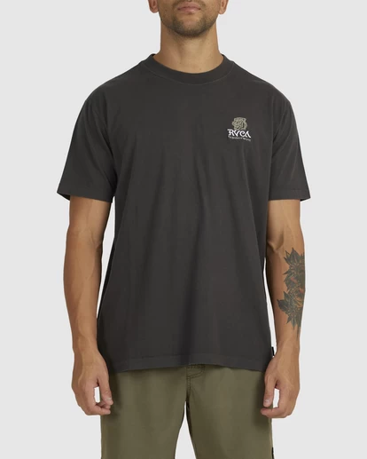 THE MEN’S RVCA BANGALORE SHORT SLEEVE TEE IS A MODERN TAKE ON A VINTAGE SPORT GRAPHIC. FEATURES PIGMENT DYED BLACK BASE, RELAXED FIT, LEFT CHEST EMBROIDERED LOGO, LARGER DISTRESSED SCREENPRINTED LOGO ACROSS THE BACK, WIDER CREW NECK AND FINISHED WITH A VINTAGE WASH FOR A REAL WORN IN FEEL.