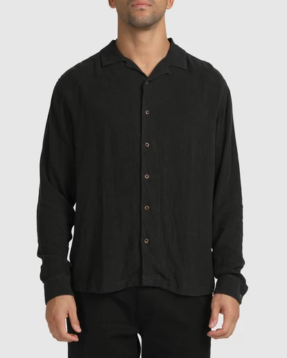 A CLASSIC, THROW-BACK INSPIRED LOOK THAT WORKS FOR ANY EVENT. THE RVCA BEAT LONG SLEEVE BUTTON-DOWN SHIRT IS MADE FROM LIGHTWEIGHT, LINEN VISCOSE BLENDED FABRIC IN AN OVERSIZED FIT WITH AN UNSTRUCTURED COLLAR, LONG SLEEVES AND BUTTON FRONT CLOSURE.