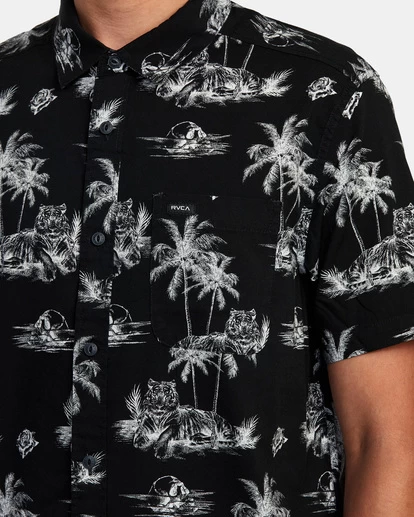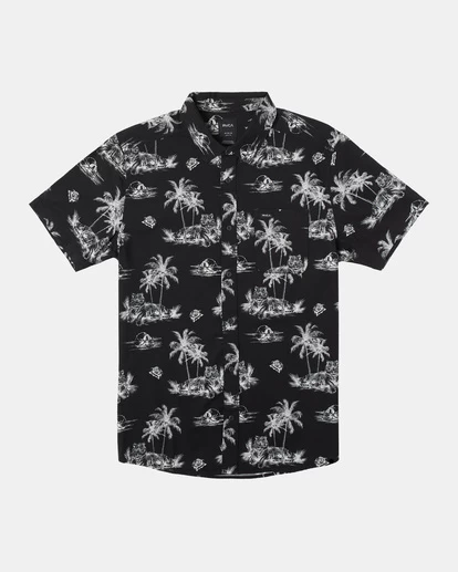 FEATURING EXCLUSIVE GRAPHICS FROM ANP ARTIST BENJAMIN JEANJEAN, THIS WOVEN BUTTON-DOWN SHIRT IS MADE OF COTTON-VISCOSE BLENDED FABRIC WITH A CHEST POCKET AND A SCALLOPED HEM.