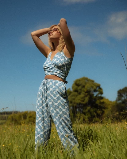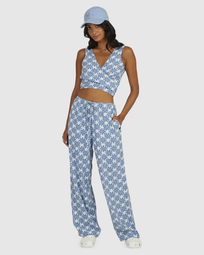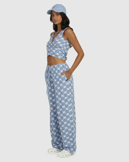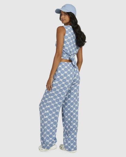 PACK YOUR HOLIDAY PANT BECAUSE IT’S TIME FOR A GETAWAY. THIS EASY TO WEAR LIGHT WEIGHT PANT FEATURES AN ELATIC WAIST AND TIE, IN A RELAXED FIT AND TEXTURED LINEN BLEND FABRIC. PAIR WITH A BIKINI OR THE DAISY TIE FRONT TOP FOR A CUTE SUMMER LOOK.