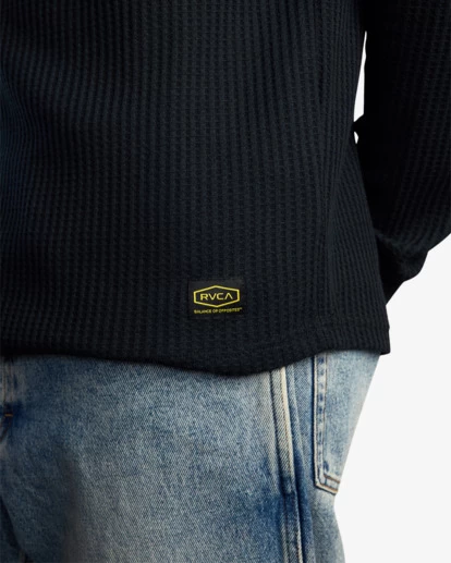 DESIGNED TO LAYER AROUND THE CLOCK, THE RVCA DAY SHIFT LONG SLEEVE THERMAL TEE BRINGS A PREMIUM FEEL TO THE COLD SEASON ESSENTIAL. MADE FROM A SOFT, BLENDED WAFFLE KNIT, THE SLIGHTLY FITTED MEN’S LONG SLEEVE T-SHIRT KEEPS A CLASSIC CUT WITH A ROUNDED HEM, ADDING A WOVEN LABEL TO THE LEFT HEM.
