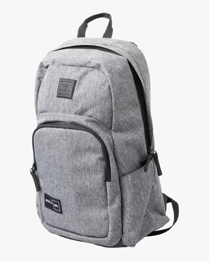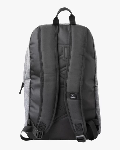COMBINING FUNCTION, STYLE, AND COMFORT, THE RVCA ESTATE BACKPACK IV IS MADE FROM WATER RESISTANT 600D POLYESTER, A DURABLE, HIGH-QUALITY FABRIC DESIGNED TO KEEP YOUR BELONGINGS SAFE AND DRY. FEATURING TWO ZIPPERED COMPARTMENTS, SIDE COMPARTMENTS, AND A FRONT POUCH INTERNAL ORGANIZER SO EVERYTHING IS WHERE YOU NEED IT, THIS MEN’S BACKPACK IS BUILT WITH ADJUSTABLE SHOULDER STRAPS FOR A COMFORTABLE, PERSONAL FIT. FINISHED OFF WITH RVCA BRANDED REAR MESH PANEL AND WOVEN LABELS WITH BRANDED LASHING AT THE FRONT. HOLDS 28 LITERS.