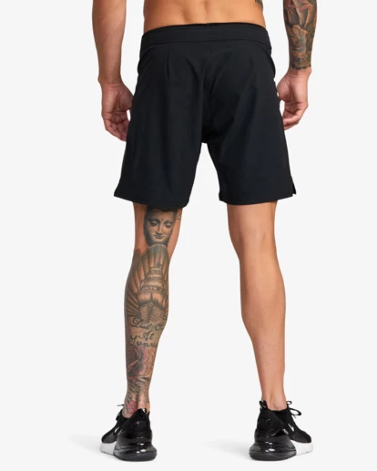 STEP UP YOUR WORKOUT LOOK IN THE RVCA GRAPPLER ELASTIC WALKSHORTS 17″, MADE FROM SOFT POLY STRETCH FABRIC IN A SLIM FIT. THESE PERFORMANCE-ENHANCING SHORTS FEATURE AN ELASTIC WAIST, INTERNAL DRAWCORD, CLEAN HEM AND GUSSET FOR ULTIMATE FLEX. TOPPED WITH RVCA VA BRANDING.