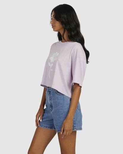 AN OVERSIZED TEE STOLEN FROM THE GUYS AND CUT OFF TO A CUTE WAIST GRAZING LENGTH. THIS CROPPED RUMMAGE TEE HAS A DROPPED SHOULDER AND COMES IN AN ORGANIC COTTON. FEATURING AN OVERSIZED CHEST PRINT IN PUFFED INK FOR SOMETHING A LITTLE DIFFERENT.