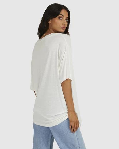 AN OVERSIZED TEE STOLEN FROM THE GUYS, THIS RUMMAGE TEE HAS A DROP SHOULDER AND COMES IN A SLINKY LINEN BLEND JERSEY. FEATURING ARTWORK PRINTED INTERNALLY, AND FINISHED WITH A SILICONE WASH FOR A SUPER SOFT HANDFEEL.