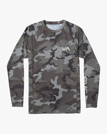COMBINING SUN PROTECTION AND STYLE IN ONE, THE RVCA LONG SLEEVE RASHGUARD OFFERS STRETCHY, COMFORTABLE, WATERTIGHT COVERAGE WHILE YOU SURF. THIS RASHGUARD FEATURES LONG SLEEVES, UVA AND UVB PROTECTION, A HIDDEN BACK KEY LOOP AND RVCA VA BRANDING.