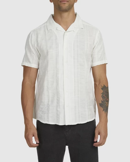 THE RVCA MANCHESTER SHORT SLEEVE SHIRT OFFERS PREMIUM COMFORT AND EFFORTLESS STYLE. MADE FROM A SUPER SOFT TEXTURED COTTON RICH JACQUARD STRIPE FABRIC BASE, REGULAR FIT, BUTTON DOWN FRONT AND SLIGHTLY SCALLOPED HEM IS A NO BRAINER FOR ANY SUMMER OCCASION.