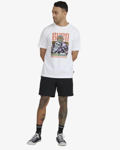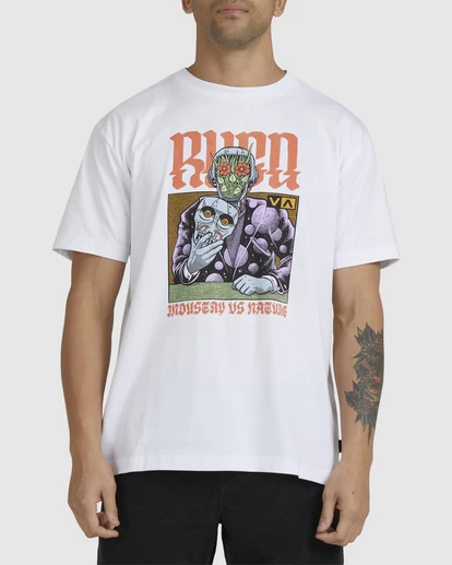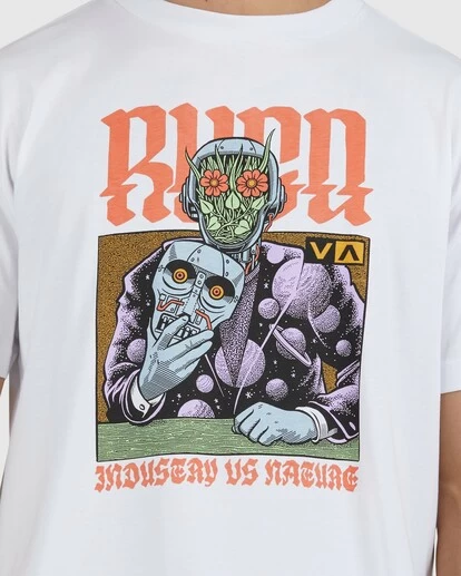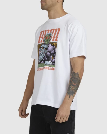 THE MENS RVCA MANDEROID SHORT SLEEVE TEE FEATURES OVERSIZED ARTWORK BY RVCA ON OUR PREMIUM HEAVY WEIGHT COMBED COTTON JERSEY IN A MODERN RELAXED FIT AND A WIDER CREW NECK. TO ADD SOME VALUE THE TEE IS FINISHED WITH A HEAVY VINTAGE WASH AND A BUTTERY SOFT HAND-FEEL, YOU WON’T WANT TO TAKE IT OFF.