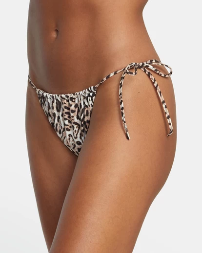 LET YOUR INNER WILD GIRL OUT IN THE RVCA WOMENS MEOW SLIDE TIE SKIMPY BIKINI BOTTOMS. FEATURING A MODERN ANIMAL PRINT ON STRETCHY RECYCLED NYLON, THIS WOMEN’S SWIM BOTTOM OFFERS SLIM SEAT COVERAGE AND A MID-HIGH WAIST WITH TEXTURED TIES AT THE SIDES. AN ESSENTIAL FOR SUMMER.