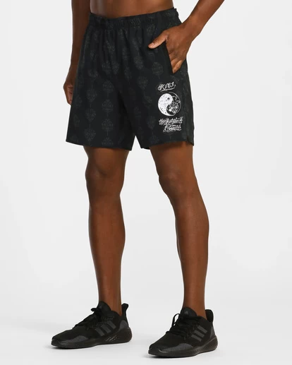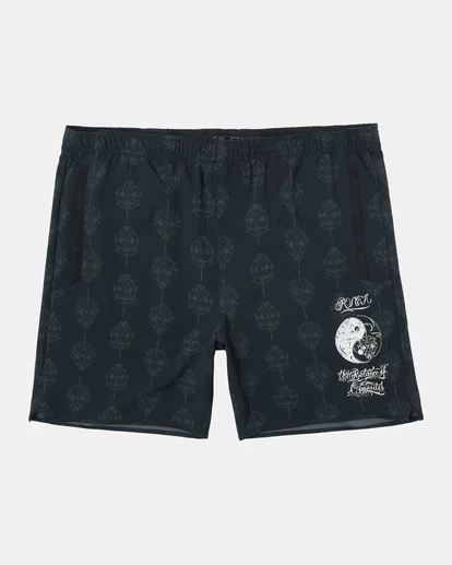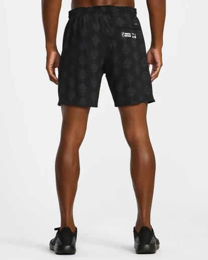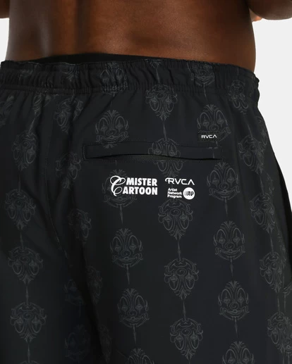 THE RVCA MISTER CARTOON YOGGER ELASTIC RUNNING SHORTS 17″ ADD VIBES TO ANY WORKOUT. MADE FROM RECYCLED 4-WAY STRETCH WITH ODOR-CONTROL TECHNOLOGY, THESE MOISTURE-WICKING, QUICK-DRYING SHORTS FEATURE CUSTOM ALLOVER PRINTS BY ANP ARTIST MR. CARTOON, AN ELASTIC WAIST, INTERNAL DRAWCORD, POCKETS THROUGHOUT AND COLLECTION TRIMS.