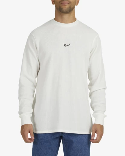 THE MENS MUJI WAFFLE LONG SLEEVE TEE IS A PERFECT LAYERING PIECE FOR WHEN THE TEMPERATURE DROPS BECAUSE IT’S MADE FROM A PREMIUM COTTON WAFFLE KNIT THAT BRINGS SOME THERMAL QUALITIES TO YOUR WINTER WARDROBE. MADE IN OUR COMFY REGULAR LONG SLEEVE FIT, CREW NECK, RIBBED CUFFS AND FURTHER ELEVATED WITH EMBROIDERED RVCA SCRIPT LOGO AT THE CENTRE FRONT CHEST.