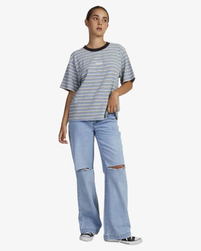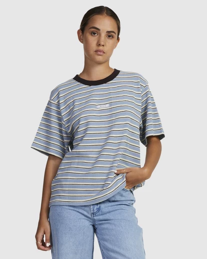 STRIPES ARE WAY MORE FUN IN COLOUR, AND IN OUR DUSTY BLUE? EVEN BETTER. THE WOMEN’S RVCA PATCH STRIPE SHORT SLEEVE TEE IS BRINGING US SOME SUMMERTIME STRIPES TO GET FUNKY WITH THIS SEASON. PAIR WITH SOME JEANS AND DOCS OR SOME SHORTS AND SNEAKERS FOR AN EPIC NOT TOO GIRLY NOT TOO GRUNGE LOOK.