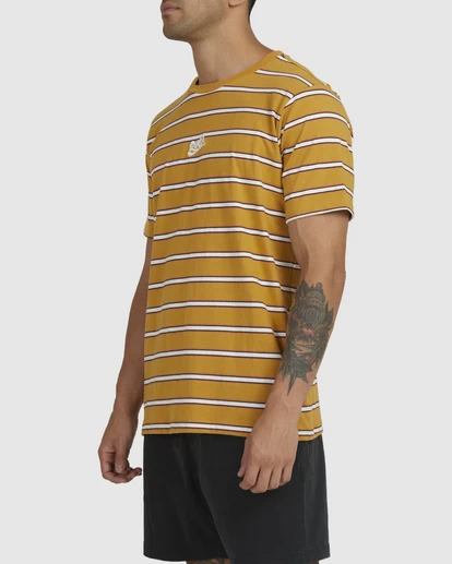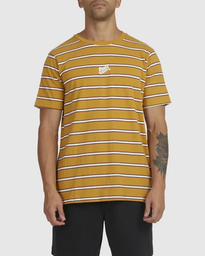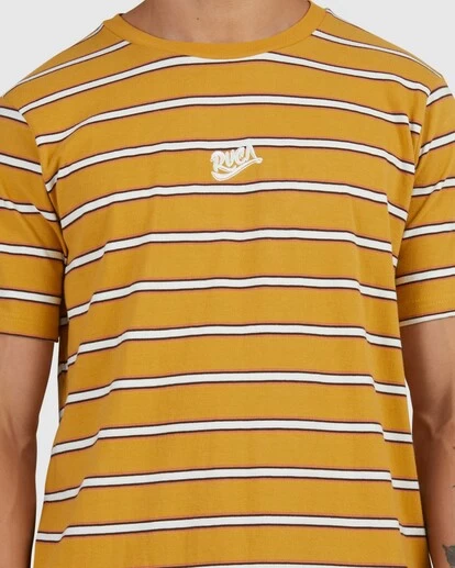THE MEN’S RVCA RESEVIOUR STRIPE TEE IS A VINTAGE INPIRED YARN DYE TEE WITH A MODERN TWIST. MADE OF A SOFT MID-WEIGHT COTTON JERSEY FEATURING A REGULAR FIT, WIDER NECK RIB DETAIL, SIDE SEAM VENTS, HERRINGBONE DETAIL, RVCA SCRIPT EMBROIDERED LOGO AND RVCA WOVEN LABEL AT SIDE SEAM.