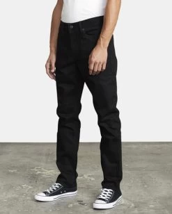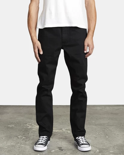 THE RVCA ROCKERS SKINNY DENIM OFFERS HERITAGE DESIGN WITH A MODERN TWIST. MADE FROM MID-WEIGHT STRETCH DENIM, THESE MEN’S JEANS FEATURE A SKINNY FIT AND TAPERED LEG, WITH A ZIP FLY CLOSURE, RVCA SHANK BUTTON, 5-POCKET STYLING AND BUSTED OUTSEAM CONSTRUCTION. TOPPED WITH LOGO BRANDING.