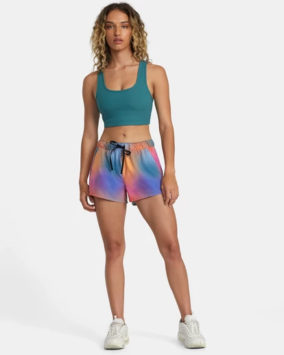 RVCA’S ROSE MACHADO TRAINING SHORTS FOR WOMEN ARE CRAFTED WITH ECO-CONSCIOUS FABRIC AND A 4-WAY STRETCH POLYESTER ELASTANE BLEND. THE REGULAR FIT SHORTS FEATURE A DRAWCORD WAIST, FIXED TIE CLOSURE AND SIDE POCKETS. A VA HIT ON THE FRONT BOTTOM LEFT LEG ADDS THE PERFECT FINISHING TOUCH TO YOUR WORKOUT LOOK. GET READY TO TACKLE ANY TRAINING SESSION IN STYLE!