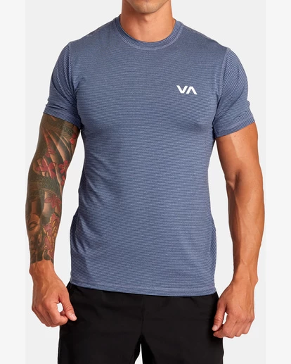 MADE OF 4-WAY STRETCH RECYCLED FABRIC, THIS STRIPED VA SPORT TOP FEATURES ANTIMICROBIAL AND MOISTURE-WICKING PROPERTIES, PLUS MESH UNDERARM PANELS FOR EXTRA BREATHABILITY AND NEXT-LEVEL COMFORT WHILE YOU TRAIN.