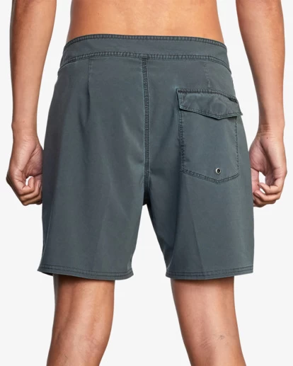 YOUR NEW GO-TO TRUNKS. THE VA PIGMENT BOARDSHORTS 18″ FEATURE A TIMELESS, HERITAGE DESIGN, WITH 4-WAY DOBBY STRETCH MATERIALS, GUSSET FLY WITH DRAWCORD AND BACK POCKET FOR YOUR NEEDS. CONSTRUCTED WITH TRIPLE NEEDLE STITCHING FOR ADDED DURABILITY AND TOPPED WITH RVCA BRANDING THROUGHOUT.