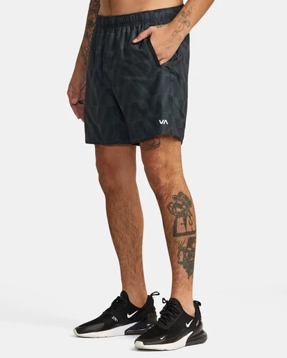 THE RVCA YOGGER IV SHORTS 17″ TAKE YOUR WORKOUT TO THE NEXT LEVEL. MADE FROM BREATHABLE POLYESTER, THESE MEN’S ATHLETIC SHORTS FEATURE AN ELASTIC DRAWCORD WAIST, BINDING AT THE HEM WITH A SPLIT VENT, POCKETS THROUGHOUT AND VA BRANDING AT THE LEFT LEG HEM.