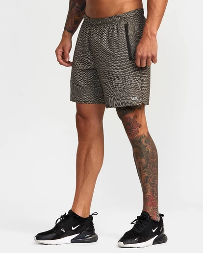 COMBINING HERITAGE DESIGN AND PERFORMANCE-ENHANCING COMFORT, THE RVCA YOGGER STRETCH ELASTIC ATHLETIC SHORTS 17″ HAVE YOU COVERED. THESE MEN’S ATHLETIC SHORTS ARE MADE FROM STRETCH POLYESTER AND FEATURE AN ELASTIC DRAWCORD WAIST, SLIGHTLY SCALLOPED HEM WITH SPLIT SIDE VENT AND POCKETS THROUGHOUT. TOPPED WITH RVCA VA BRANDING.