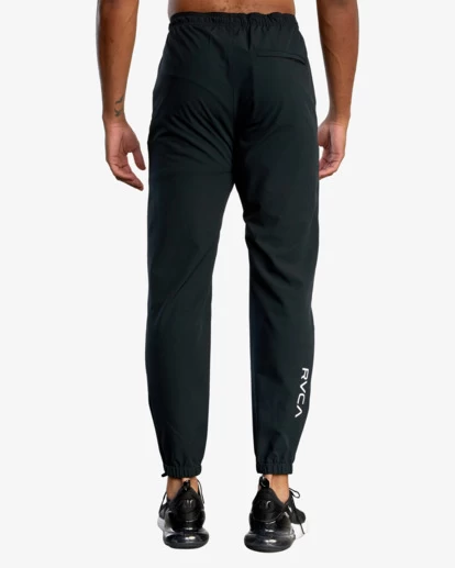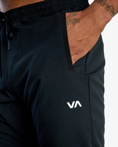LOW-KEY STYLE MEETS PERFORMANCE-ENHANCING DESIGN IN THE RVCA YOGGER TRACK PANTS II. MADE FROM SUSTAINABLE 4-WAY STRETCH, THESE MEN’S SLIM FIT SWEATPANTS FEATURE AN ELASTIC DRAWCORD WAIST, ELASTIC CUFFS, A BUILT-IN GUSSET PANEL AT THE CROTCH, FRONT HAND POCKETS AND VA BRANDING AT THE LEG.