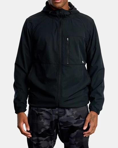 THE RVCA YOGGER ZIP-UP HOODED JACKET II OFFERS ULTIMATE PROTECTION AND STYLE FOR DAYS. MADE FROM SUSTAINABLE 4-WAY STRETCH, THIS MEN’S HOODED JACKET FEATURES A FRONT ZIP CLOSURE, ELASTIC HEM AND CUFFS, ADJUSTABLE TOGGLES AT THE HOOD AND POCKETS THROUGHOUT FOR YOUR NEEDS. TOPPED WITH VA BRANDING.